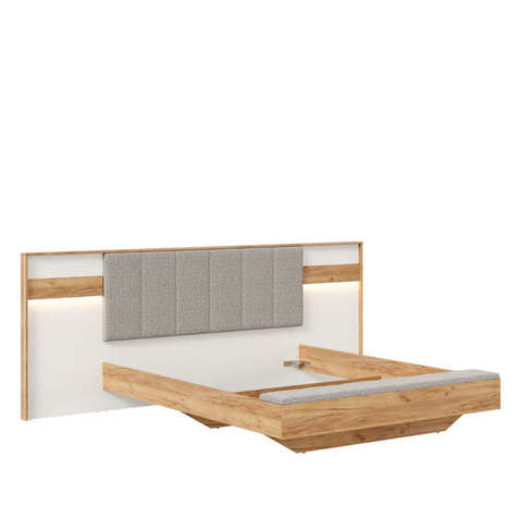 Аравия Кровать 1800х2000 с мягким изголовьем и банкеткой Дуб Золотой/Белый