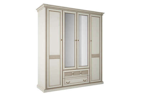 Шкаф 4-створчатый с центральными зеркальными фасадами, 2 боковыми глухими фасадами и 2 выдвижными ящиками;