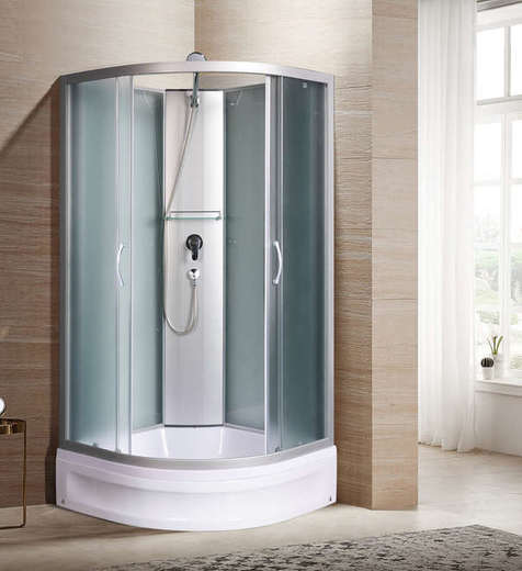 размер: 90х90 cм, четверть круга, поддон: средний, узорчатые, с крышей, мозаика, белый, ручной пульт, задние стенки: стекло , белый поддон, белый профиля, высота: 231.5 см, двери: раздвижные, 4, алюминий, 31 см, 20 см, закрытая, стекло, на поддон, универсальная, верхний душ, полочка
