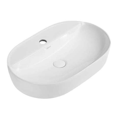 ширина: 52 см, высота: 14 см, глубина: 32 см, керамика, количество отверстий под смеситель: без отверстий, тип: накладная, белый, овальная, 1, современный, глянцевая