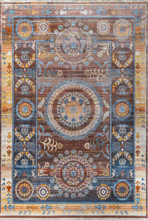 Турецкий ковер из полиэфирного шёлка «MYSTIC» 0612A-BROWN-YELLOW