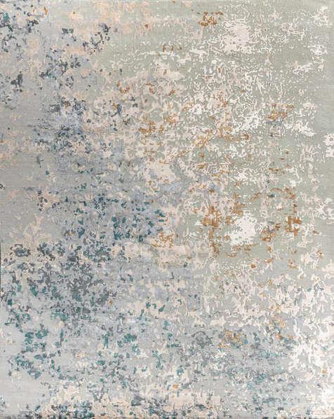 Коллекция ручных ковров из Индии недаром носит название CHROME GOLD. В утончённых абстрактных дизайнах преобладает прохладный оттенок хрома, придающий рисунку блеск и глубину. В него вплетаются ноты лазури, золота и марсала.