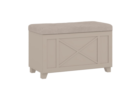 Основание и опоры изготовлены из экологически чистого, гипоаллергенного, прочного материала — массива бука с покрытием в модном цвете валенсия. Для отделки выбрана износостойкая мебельная ткань молочного оттенка.