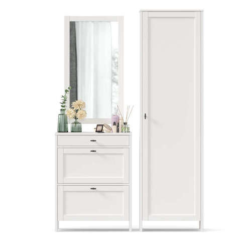 Комплект «Магна» - компактный вариант для обустройства небольшой прихожей. В состав комплекта входит всё самое необходимое - вешалка, две тумбы для обуви и зеркало. На вешалке с тремя трёхрожковыми крючками и полкой поместится вся необходимая верхняя одежда и головные уборы. Внутри двух обувниц достаточно отделений для хранения сезонной обуви. Прихожая в лаконичном дизайне прекрасно подойдет для современного интерьера.