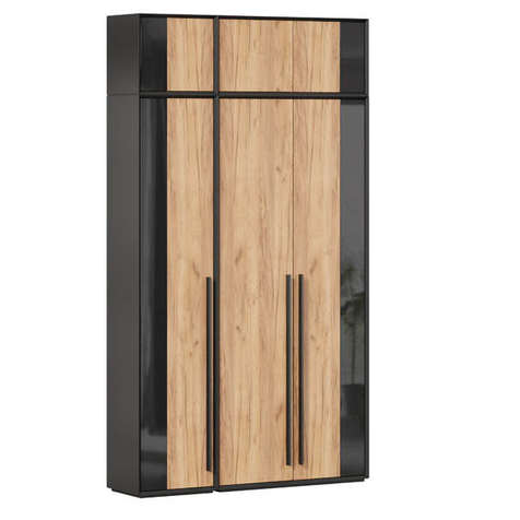 Неаполь Шкаф трехстворчатый с антресолью (Черный/Дуб Золотой)