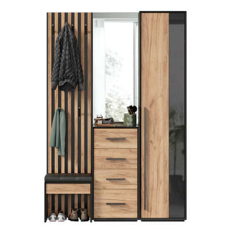 Техно Гарнитур для прихожей №1 (Черный/Дуб золотой)