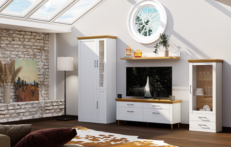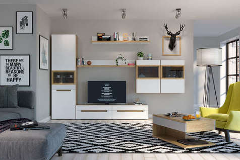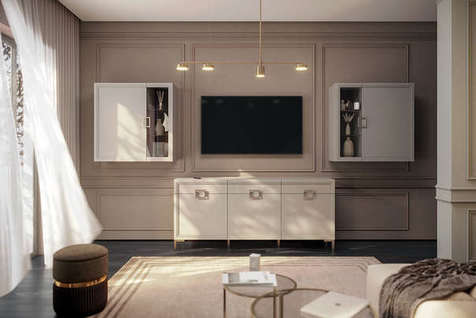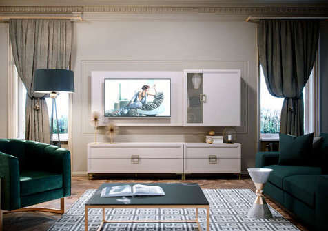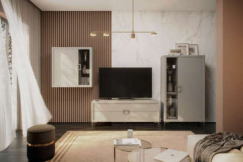 Мебель для гостиной «Орнета» — это прекрасное решение для современного интерьера, тяготеющего к классике. Два узких шкафа-витрины подходят для размещения декора, а также дополняют классическую пару из тумбы для ТВ и полки. Приятный рамочный дизайн прекрасно сочетается с современным интерьерным и любым декоративным оформлением.