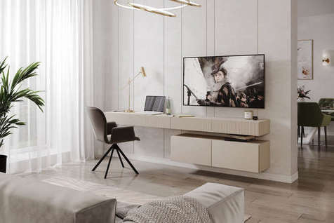 Нагрузка: на крышку тумбы — до 25 кг, на дно ящиков — до 4 кг, на навесную полку — 5 кг, на одну полку шкафа из ЛДСП — 11 кг, на одну стеклянную полку шкафа — 5 кг.
