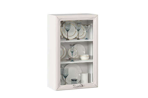 Марина Шкаф кухонный 600 с открытой полкой со стеклом Тип 3 (Белый/Алебастр)