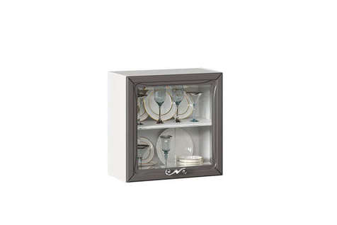 Марина Шкаф кухонный 450 со стеклом Тип 3 (Чёрный/Алебастр)