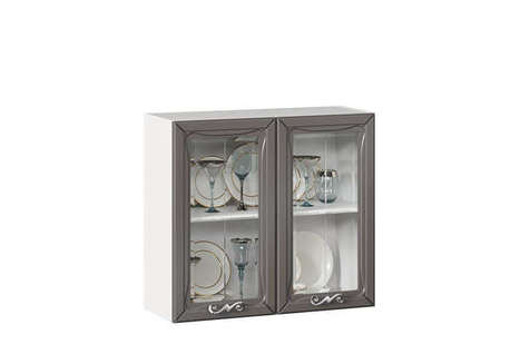 Бьянка Шкаф кухонный 800 со стеклом (Белый/Кашмир)