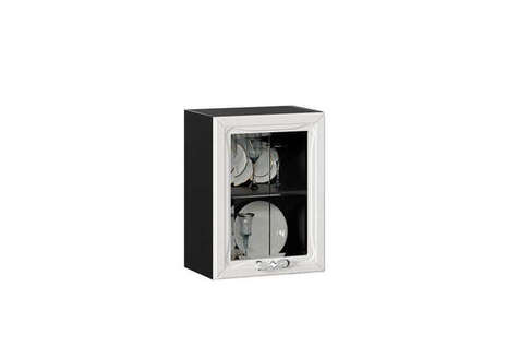 Бьянка Шкаф кухонный 450 низкий со стеклом (Чёрный/Дуб фактурный белый)